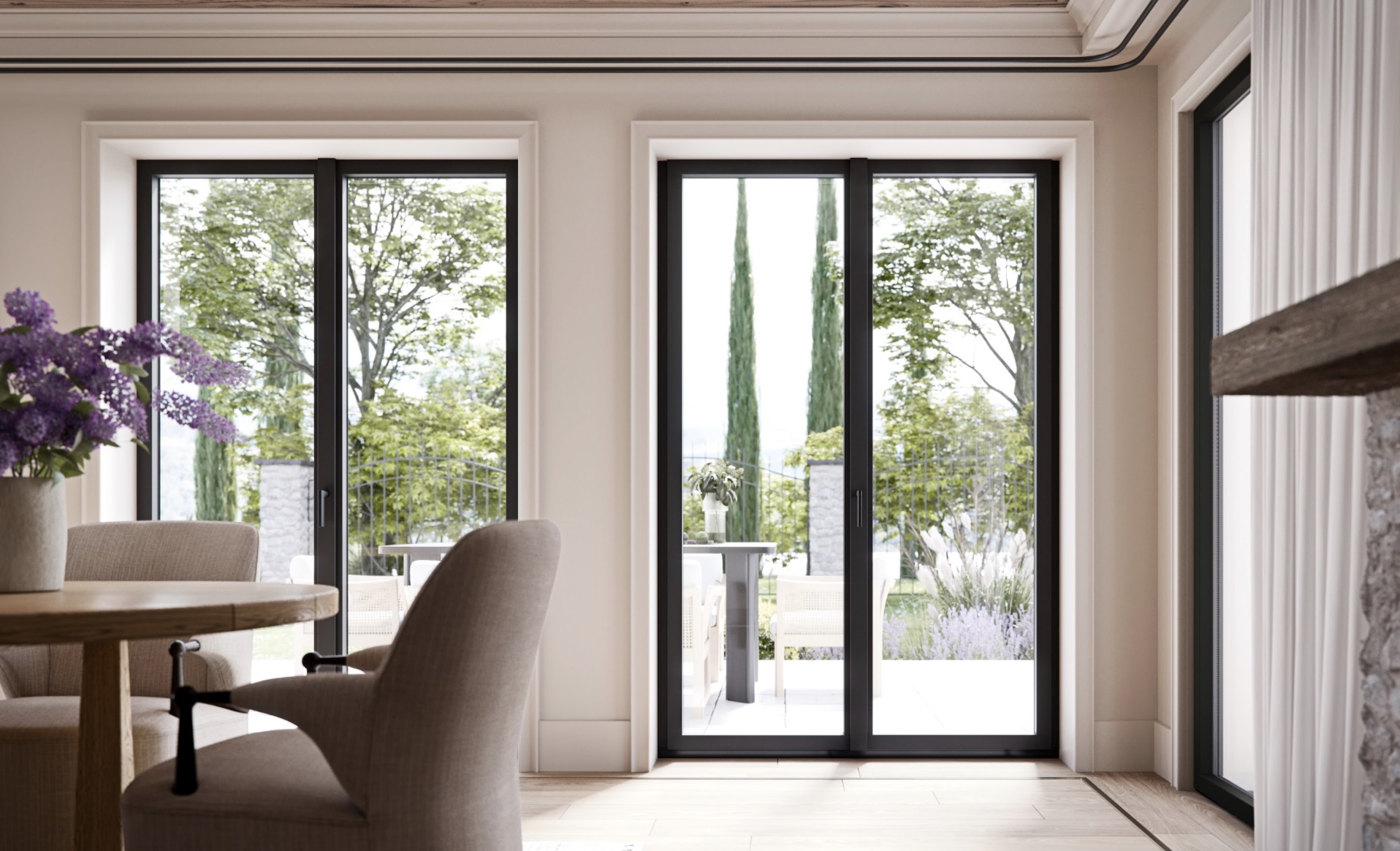 Minimalistyczna estetyka sprzyja też wellness: uporządkowana, spokojna przestrzeń bez zbędnych ozdobników wprowadza do wnętrza poczucie wyciszenia. Mniej znaczy więcej – zarówno dla oka, jak i dla umysłu. Dlatego dziś architekci łączą duże, jednolite przeszklenia z oszczędnym detalem stolarki.